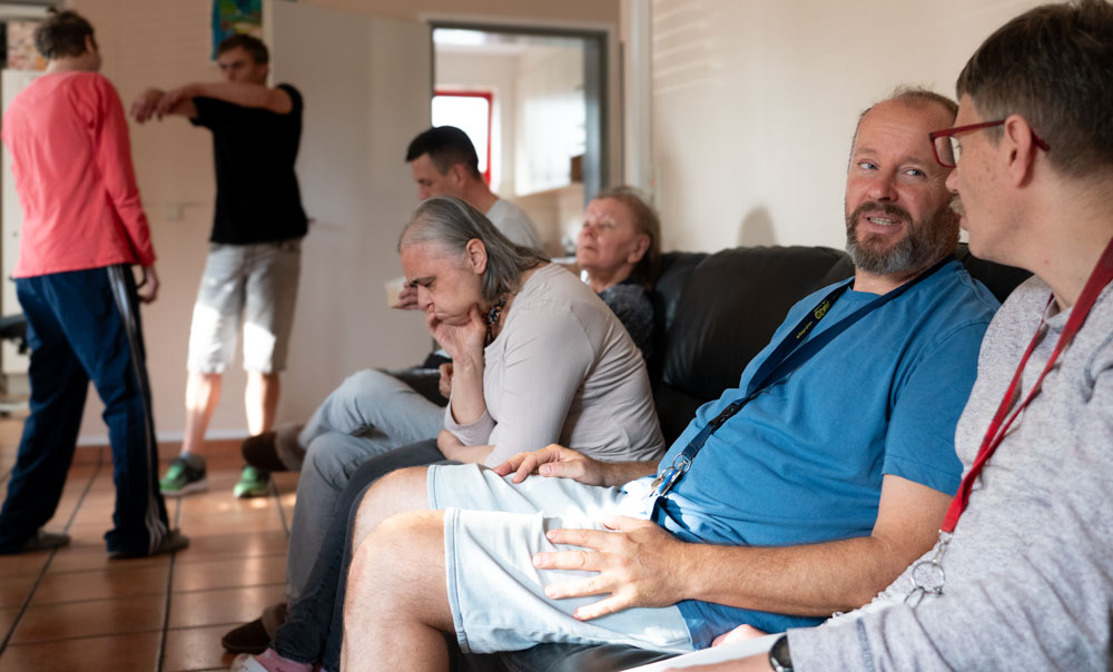Wir befinden uns im Hans-Riegler-Haus, eine von mehreren Wohnstätten für Menschen mit Behinderungen, die GIB in Berlin-Niederschönhausen betreibt. In diesem Haus leben elf Menschen mit zum Teil starken kognitiven Einschränkungen und psychiatrischen Auffälligkeiten.